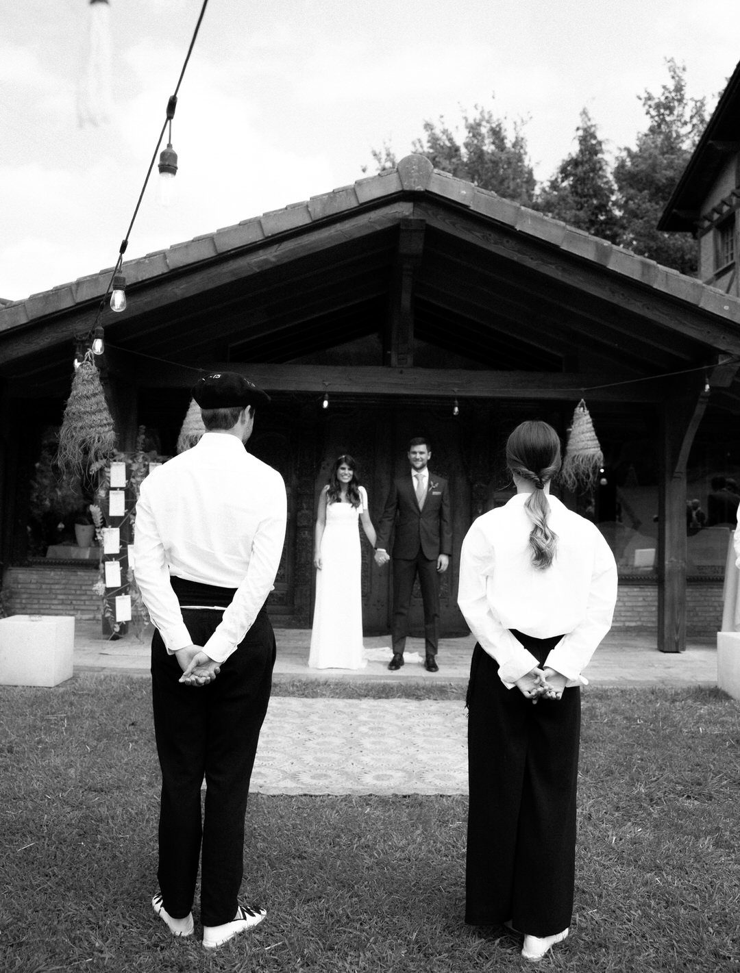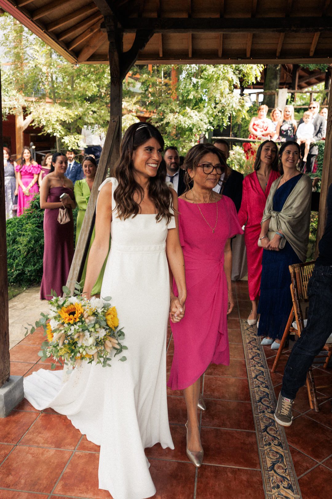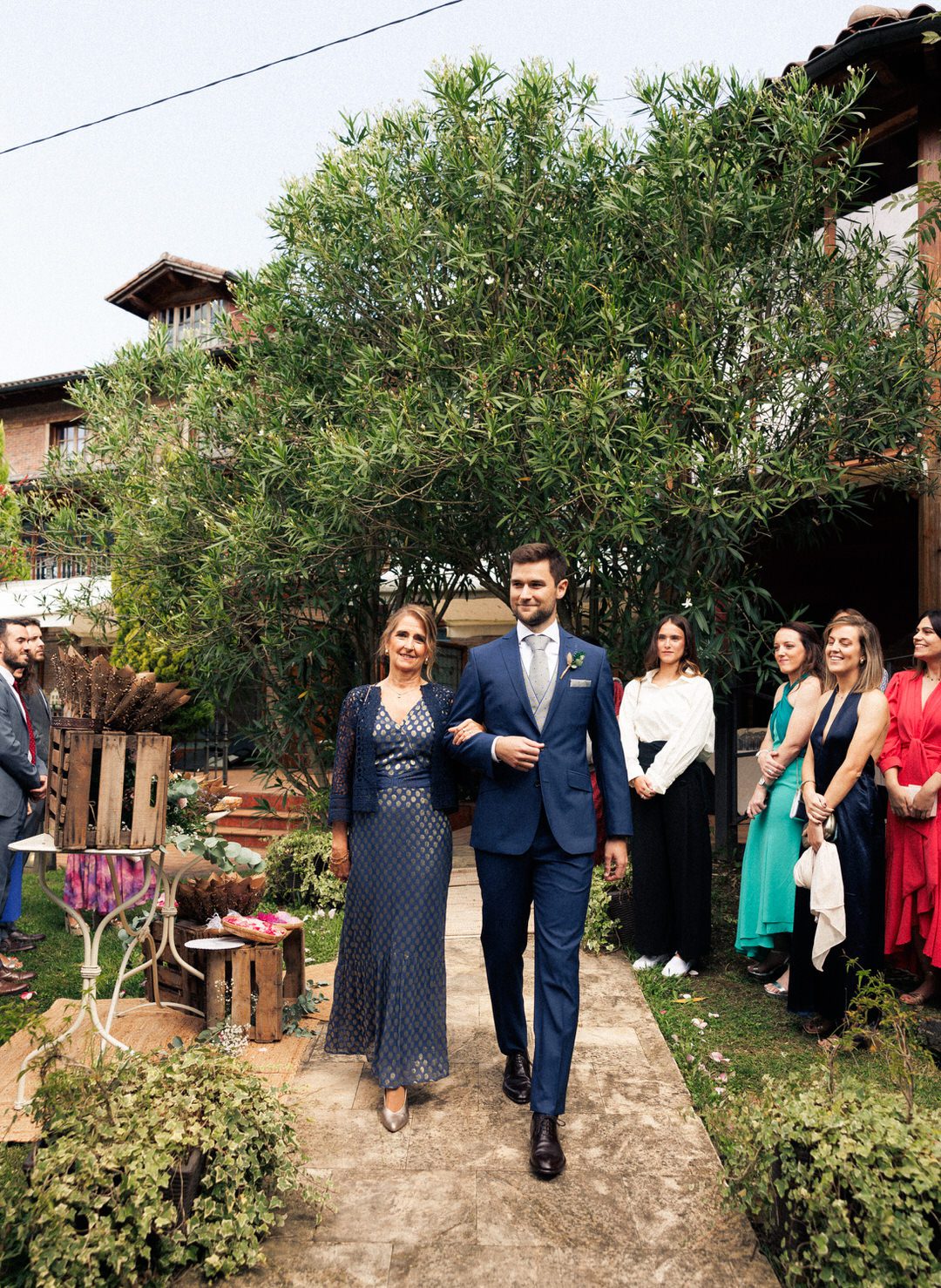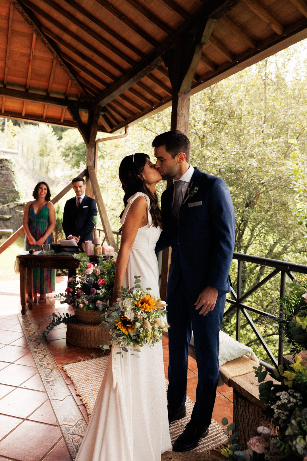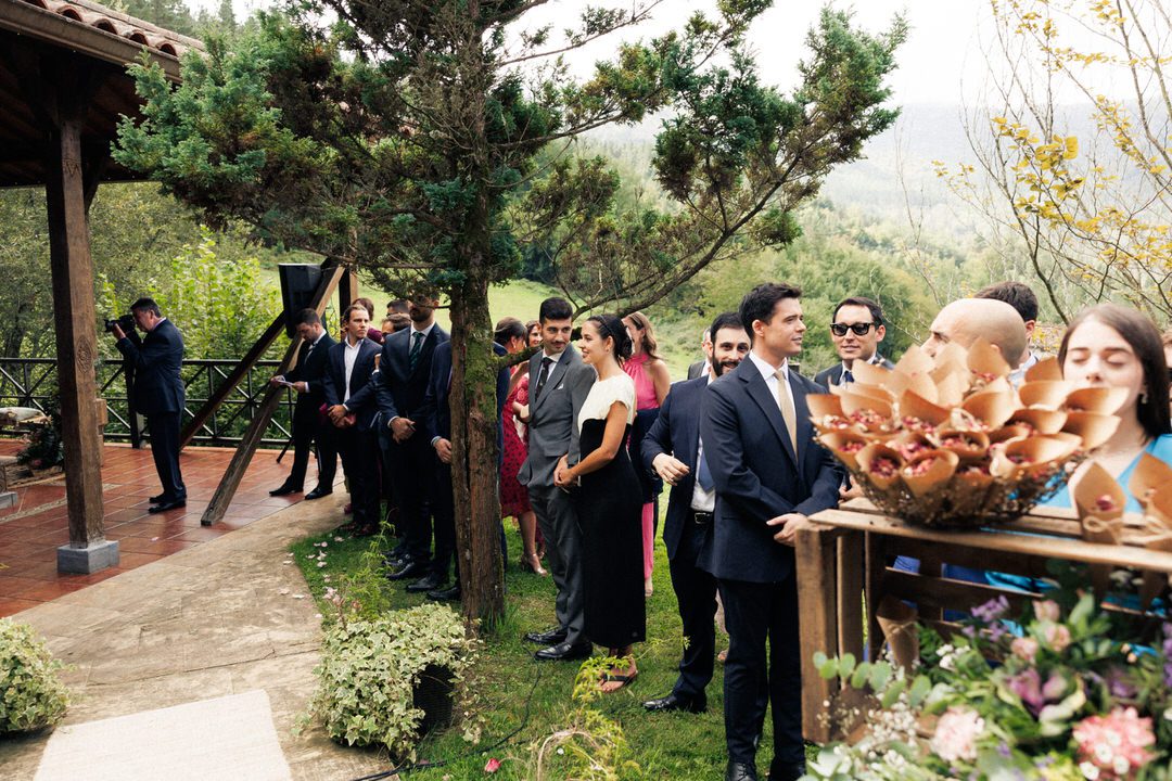La ceremonia civil se celebró en el mismo hotel, creando un ambiente íntimo y muy personal. Rodeados de su familia y amigos más cercanos, Andrea y Mikel intercambiaron votos llenos de verdad. La luz suave, el verde de los alrededores y el silencio del entorno hicieron que cada gesto y palabra cobraran aún más fuerza.