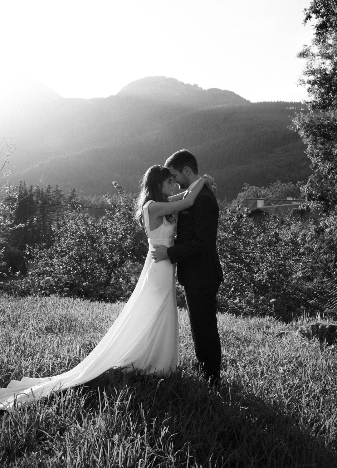 Ellos se mostraron tal y como son: naturales, espontáneos y profundamente unidos. La luz del atardecer y la naturaleza del entorno hicieron que el reportaje tuviera una estética elegante y atemporal, en línea con mi estilo de fotografía de bodas natural y orgánica en Bizkaia.